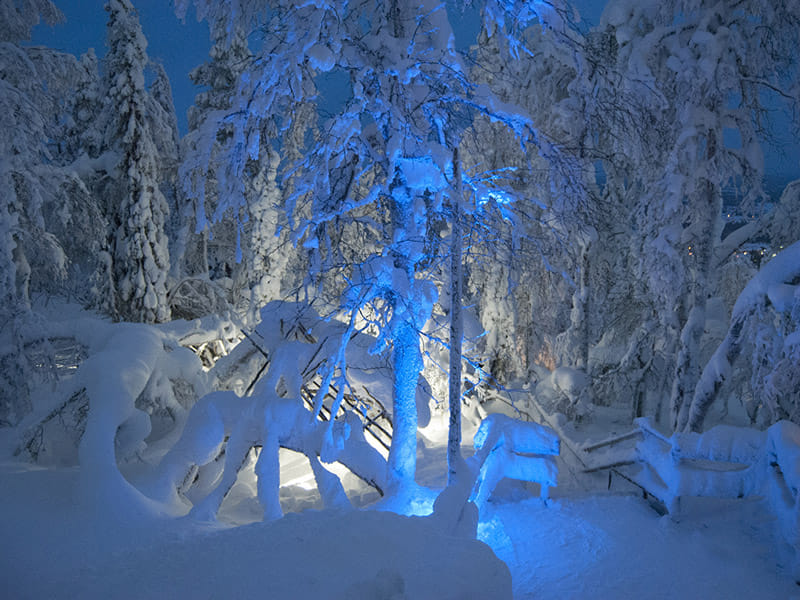 Part of the exhibition is indoors 500 sq.m. (downstairs of Levi Summit congress center), and bigger part – outdoors 10000 sq.m. on the Levi fell side. In the museums’ territory there is a small reindeer corral, where You can feed them with lichen and take pictures of the beautiful nature on the fell side.